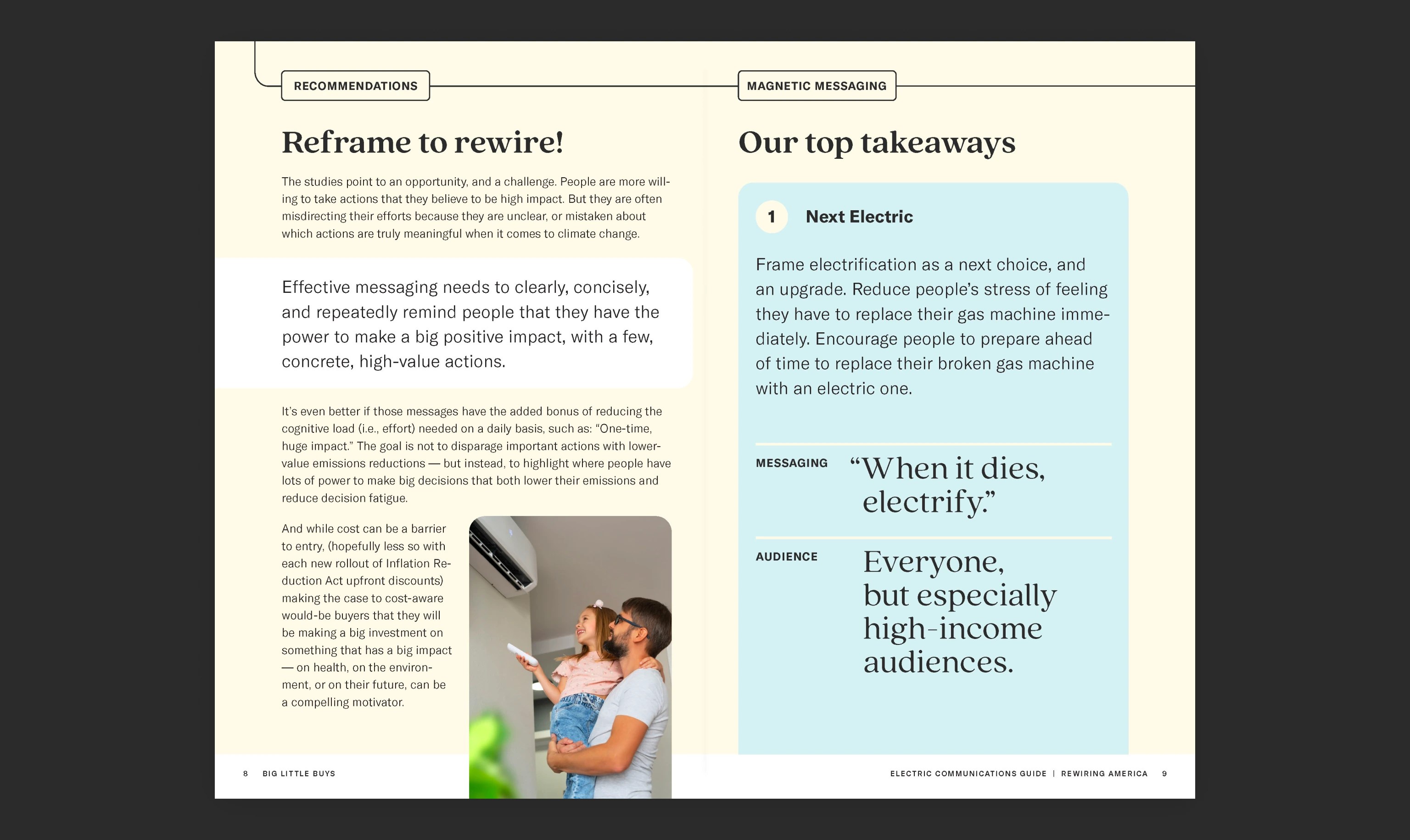 Signage, wayfinding, exhibition design created for an event at NYC Climate Week 2024. With 380 attendees, The Big Switches event debuted a new partnership between Heatmap and Rewiring America, including Big Little Buys, a new 12-page behavioral research report.